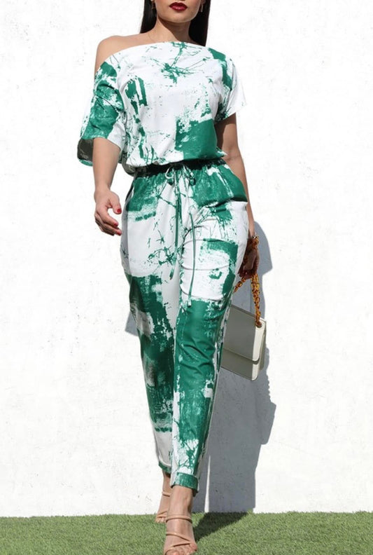 Green and White Jumpsuit