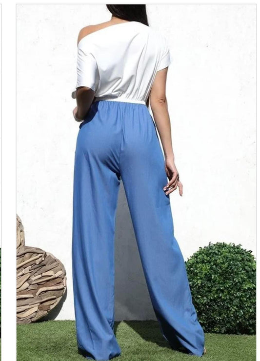Blue and White Jumpsuit