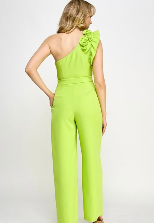 Lime One Shoulder Jumpsuit with Flower